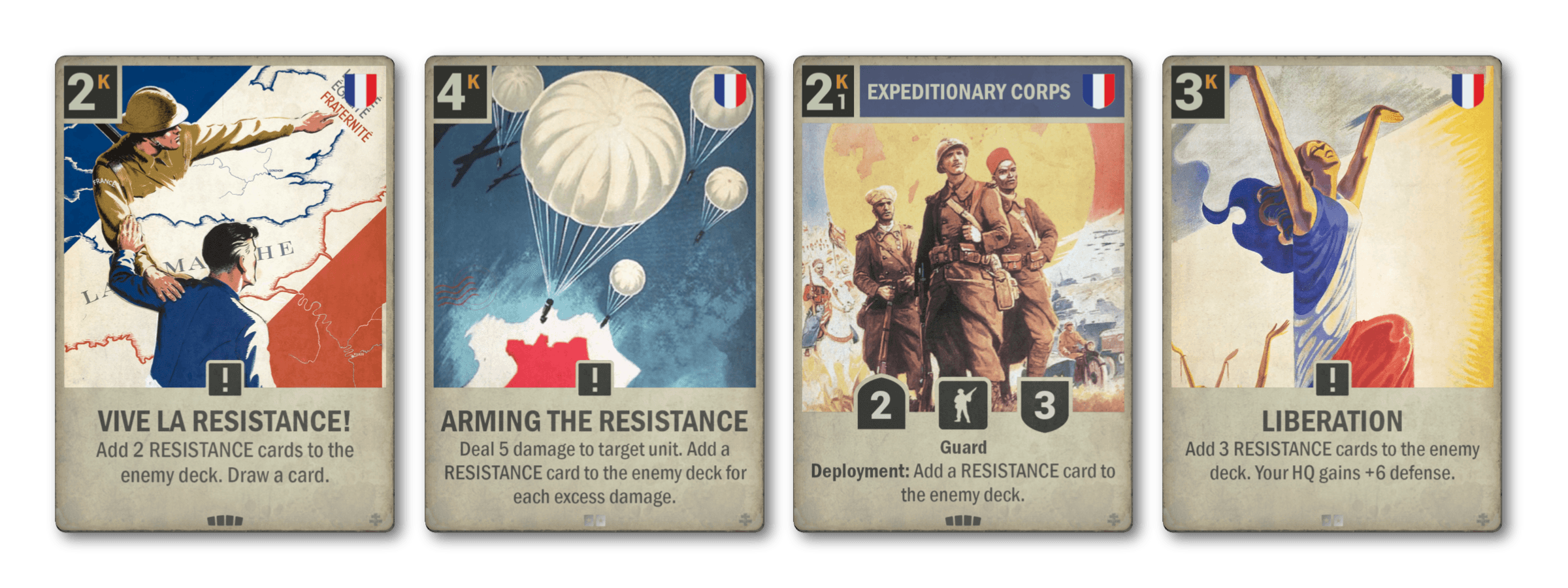 Queste nuove carte si uniscono ai classici di ritorno: VIVE LA RÉSISTANCE!, ARMARE LA RESISTENZA, CORPO DI SPEDIZIONE e LIBERAZIONE.