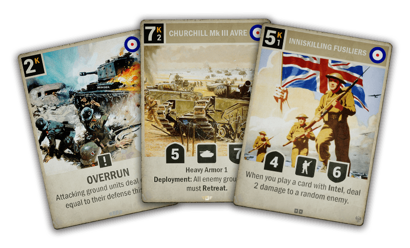 Perhaps the most intriguing new card for the British is the Churchill Mk III AVRE, whose deployment ability retreats all enemy ground units.