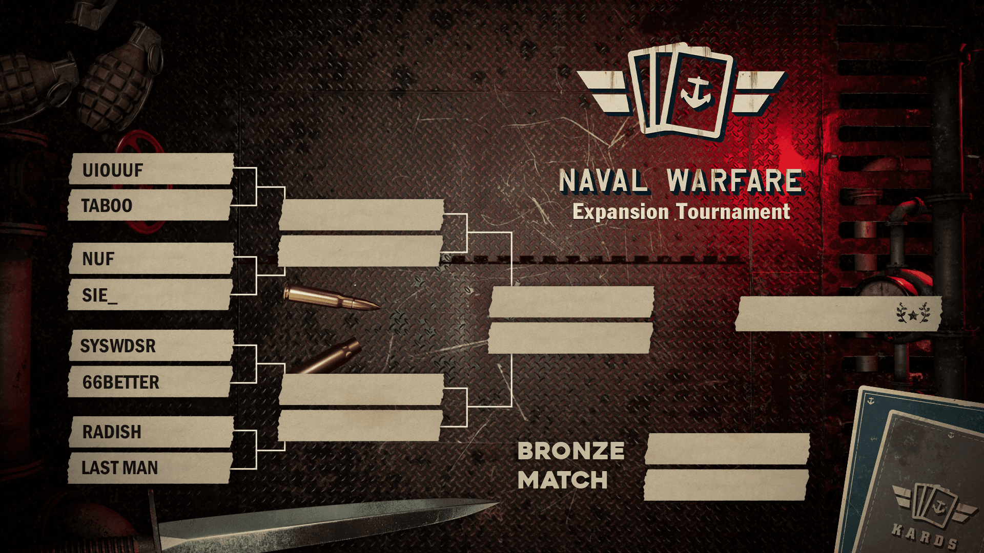 The 8 finalists in this KARDS Naval Warfare tournament are: