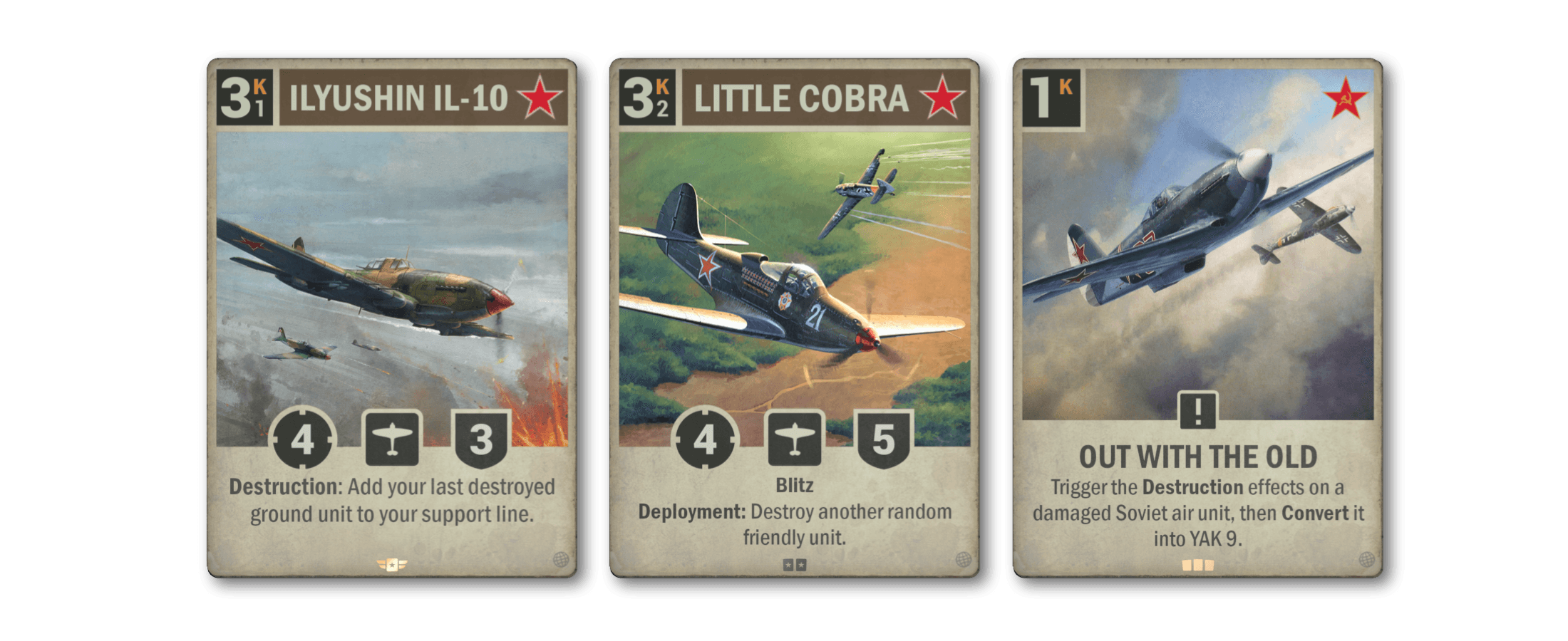 ИЛ-10 (элитная) - При уничтожении он выставляет ваш последний уничтоженный наземный отряд на вашу линию поддержки.