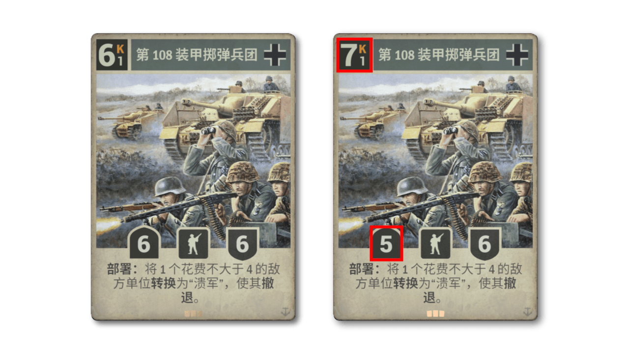 法国抵抗重制:抵抗重返现役,另有三张新组件,效果重新设计。抵抗卡牌现改为加入敌方卡组,被抽到时自动触发,以施加更加快速动态的干扰。